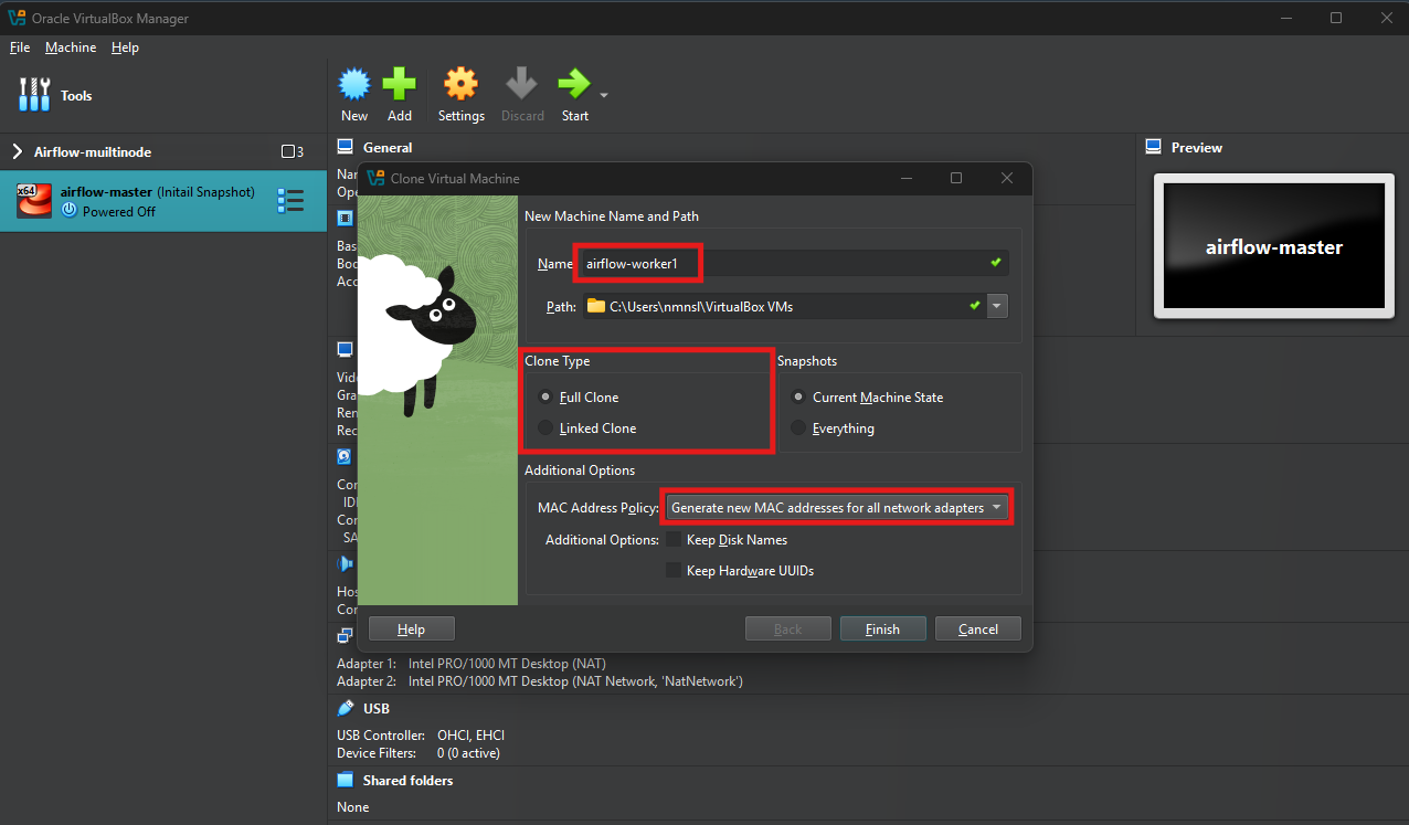 이번 포스팅에서는 이전에 생성했던 가상머신을 복제하여 2개의 워커 노드를 추가로 만들고, 각 노드에 고정 IP를 할당하는 과정을 다룹니다. 이는 다중 노드 환경에서 Apache Airflow와 같은 분산 시스템을 실행하기 위해 필수적인 작업입니다. 이제 시작해 보겠습니다.
