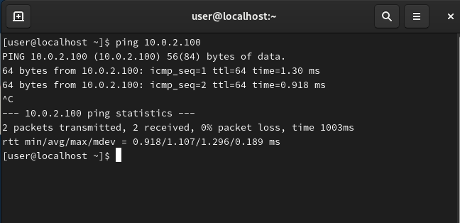 ping 10.0.2.100